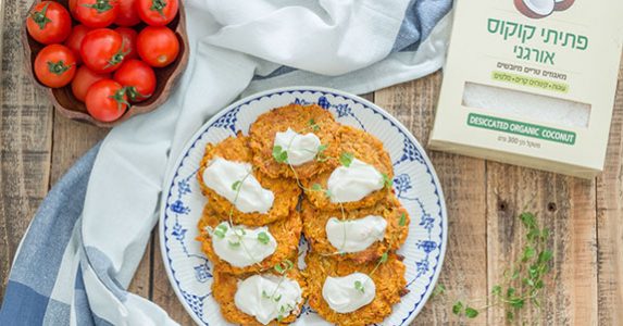 לביבות אפויות לחנוכה בשילוב דלעת, בטטה ופתיתי קוקוס ג'מוקה
