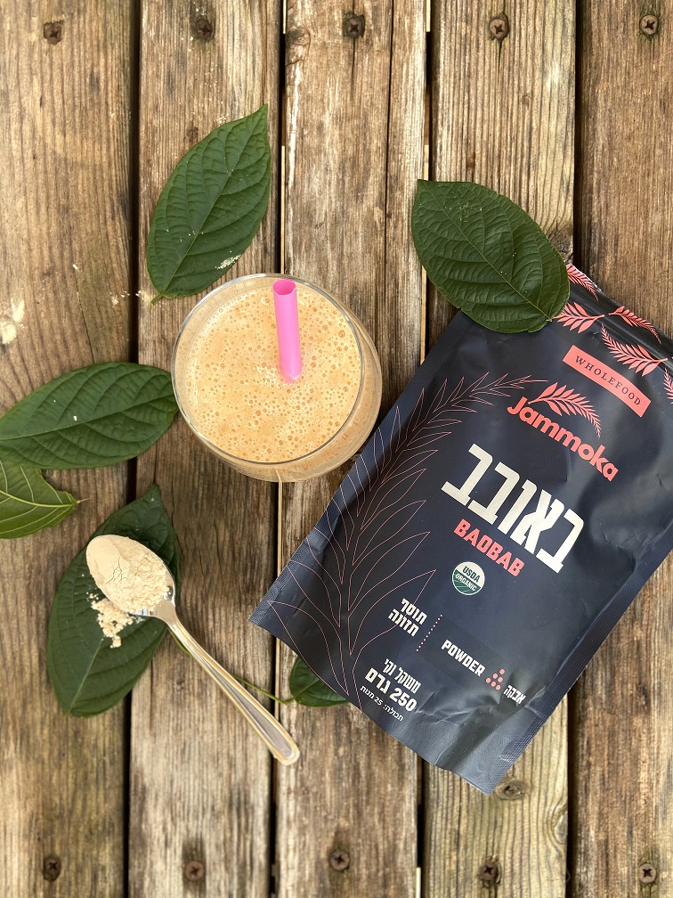 במעבד מזון, טוחנים את הפירות יחד עם אבקת באובב אורגני ג'מוקה,