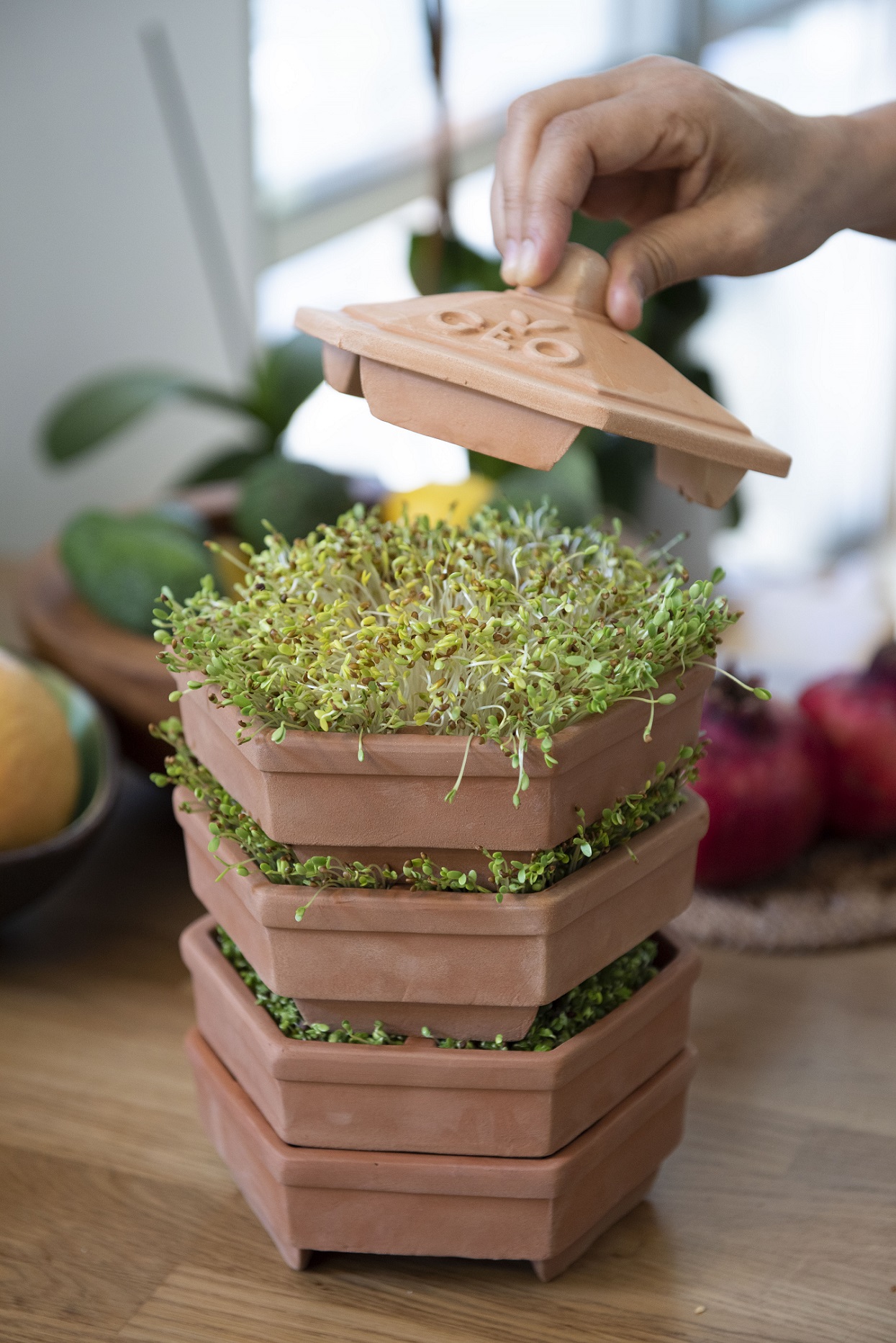 מנבטת "טרקוטה" עשויה מחרס בעבודת יד ומתאימה לגידול כל סוגי הזרעים.