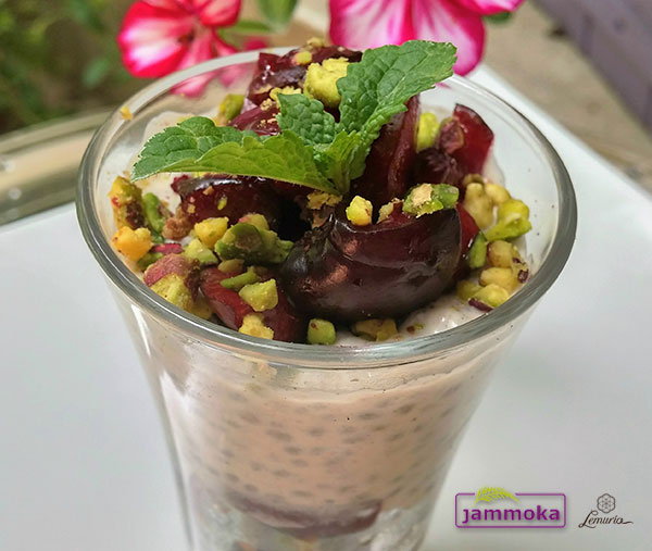 פודינג צ'יה בקרם קוקוס עם דובדבנים ופיסטוקים