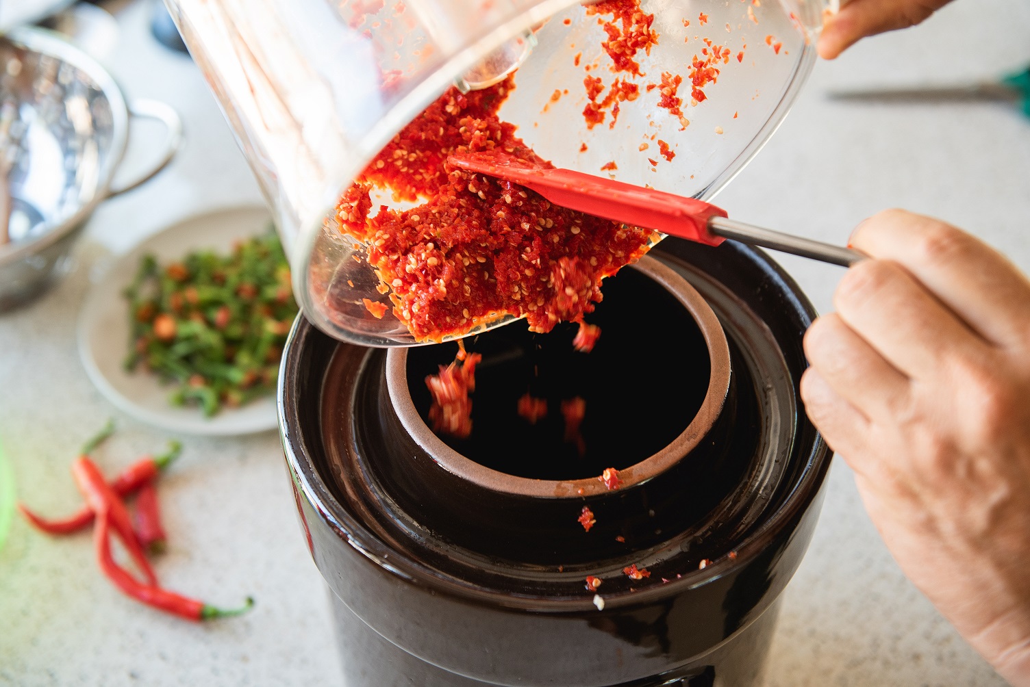כבישת ירקות בקדירת פרמנטה (Fermmenta) של ג'מוקה מאפשרת את הכבישה הטובה ביותר.